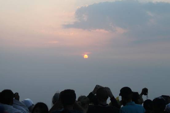 凌晨4點(diǎn)起來登上光明看日出,在很多人放棄之時太陽突然從云霧中緩緩升起,這也給我們很大的啟示:不要輕言放棄,要堅持到底!