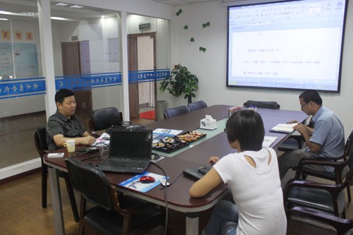 安徽客戶(hù)需要定制一套綠豆汁生產(chǎn)線設(shè)備,與銷(xiāo)售人員和工程師進(jìn)行需求的洽談。
