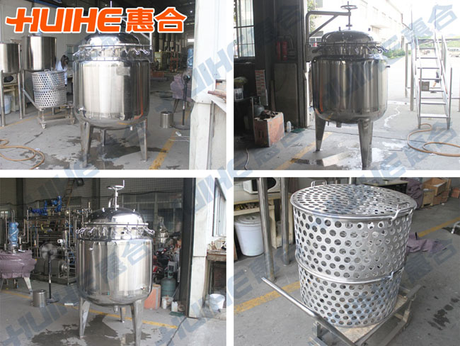 飲料中的應(yīng)用:可以組成化糖系統(tǒng):即由水粉化合磨,夾層鍋,雙聯(lián)過濾器,超高溫殺菌機(jī)組成化糖系統(tǒng)。也可用于茶葉的浸取及其它物料的預(yù)煮,加熱,混合。